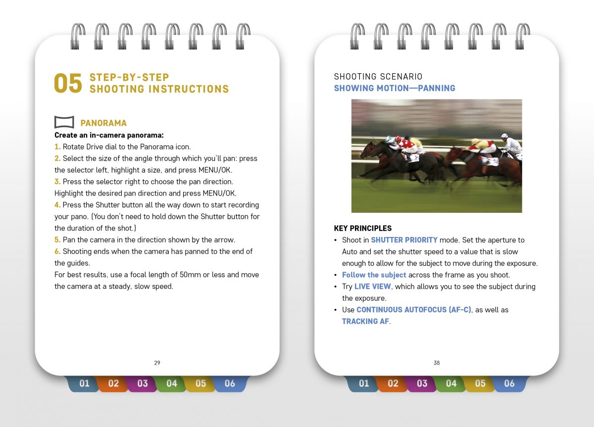 I can only reinforce the review by Omardurant who has summed it up pretty well. Camera manufacturers are not renowned for having instruction manuals that are particularly clear in their instructions. I only have a digital copy of the guide at present and I am waiting the arrival of my printed copy. I have purchased other rockynook